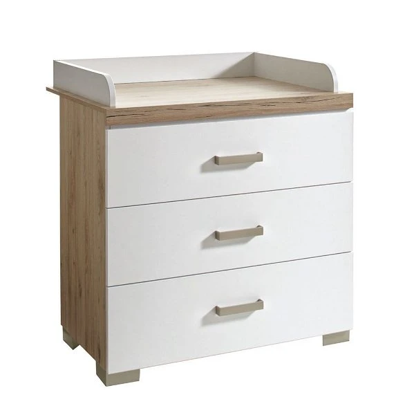 Die Transland Hilja Wickelkommode ist mit 3 Schubkästen ausgestattet. Der Wickelansatz ist im Lieferumfang enthalten.